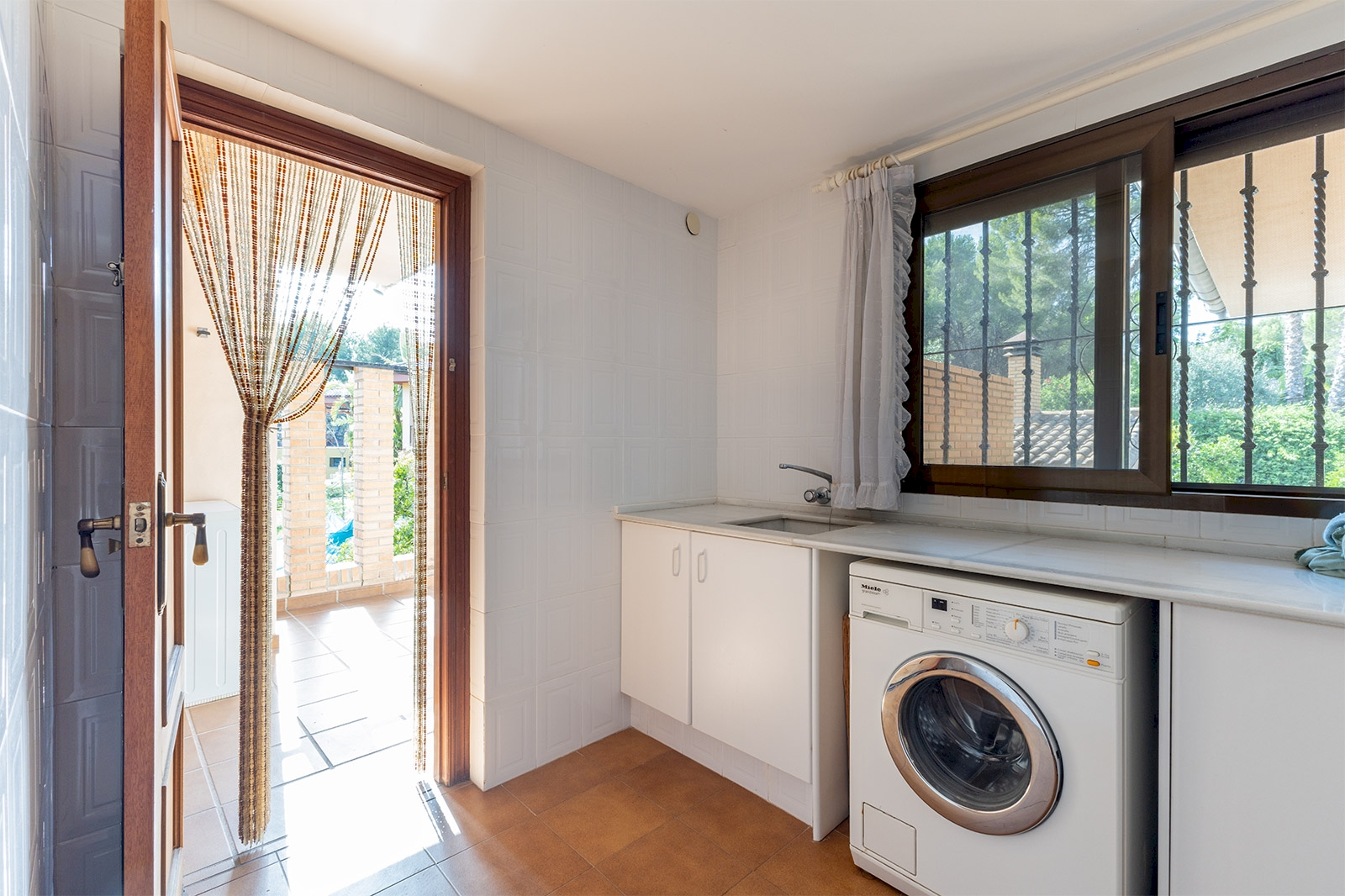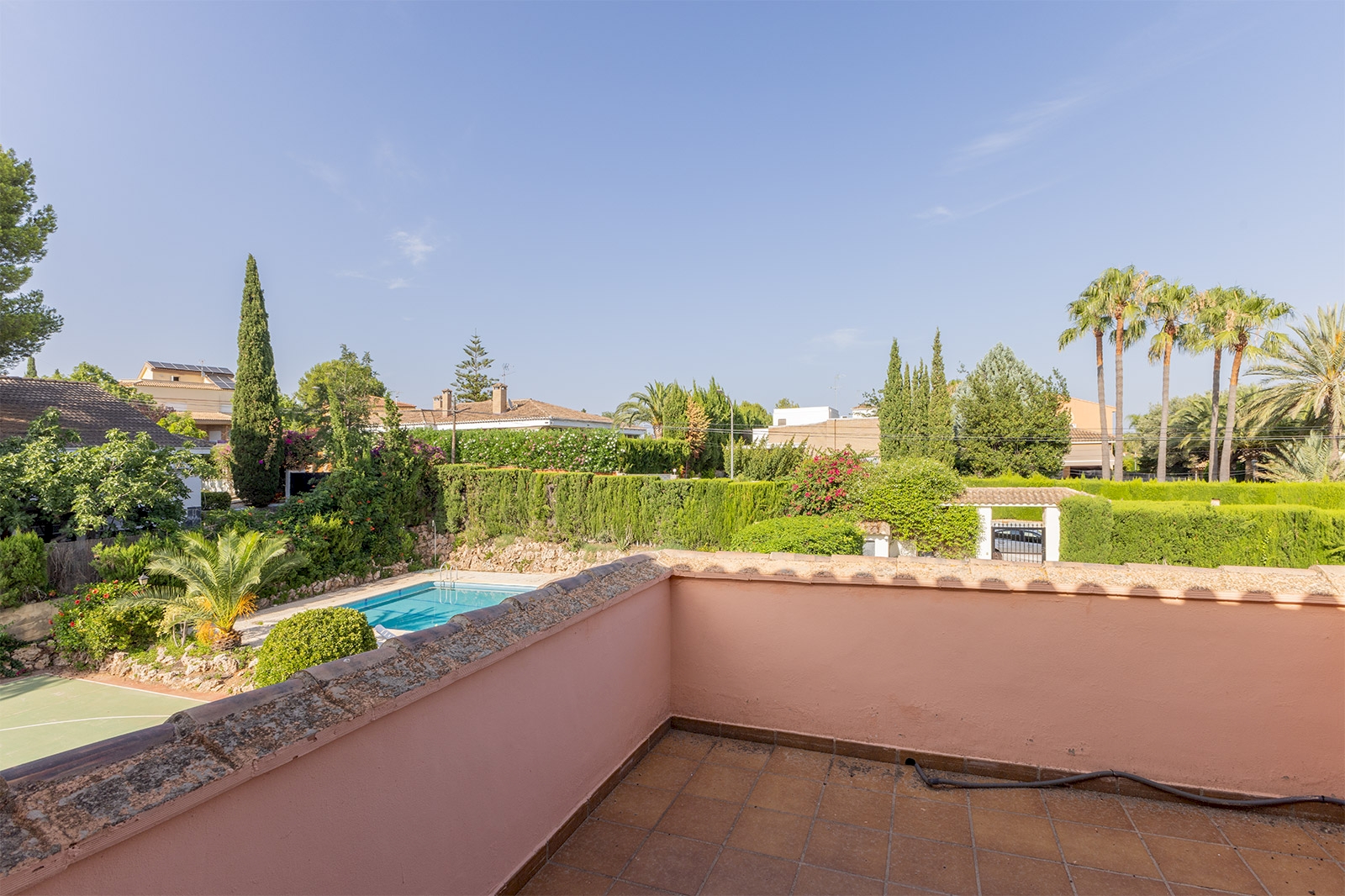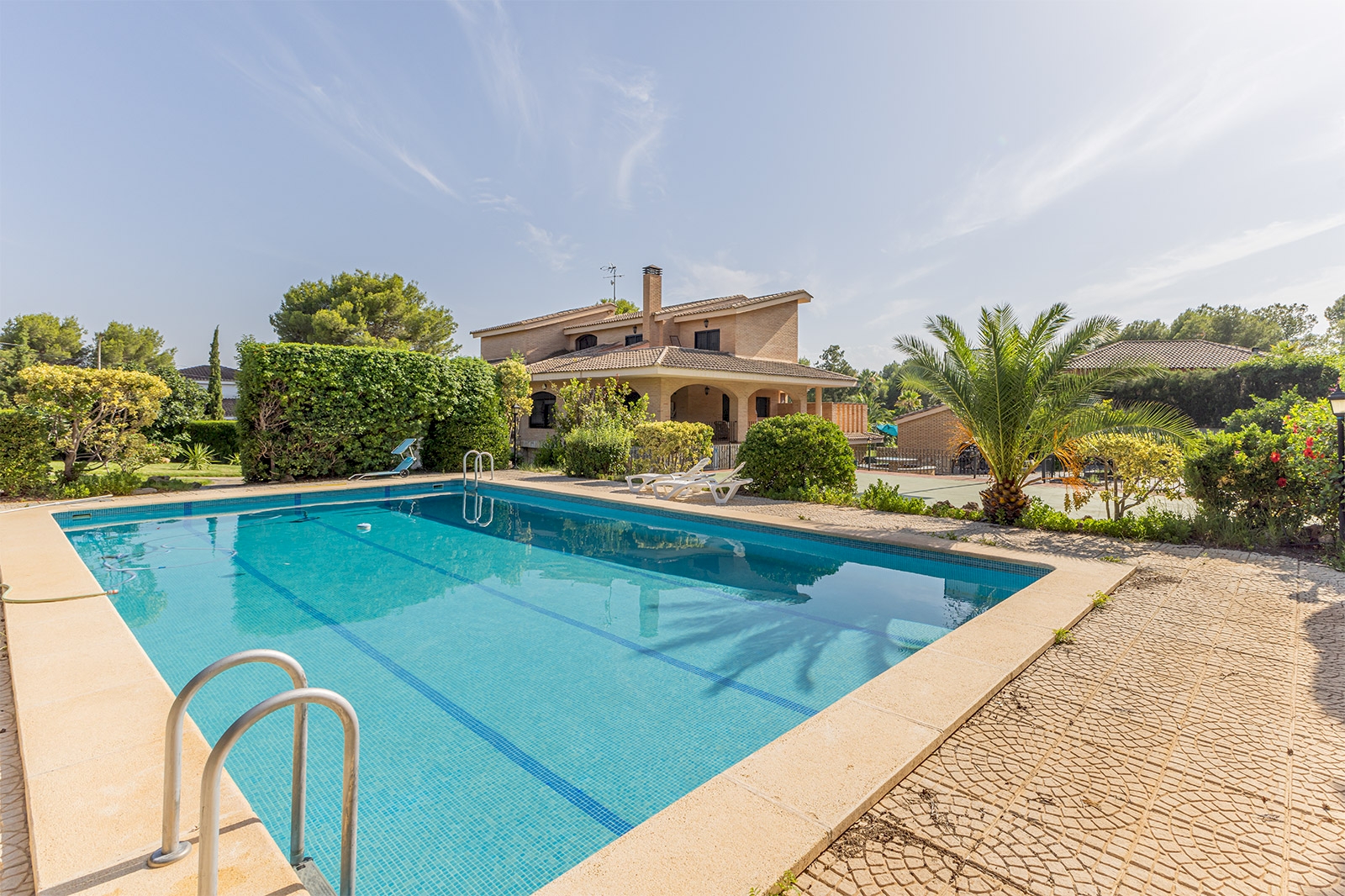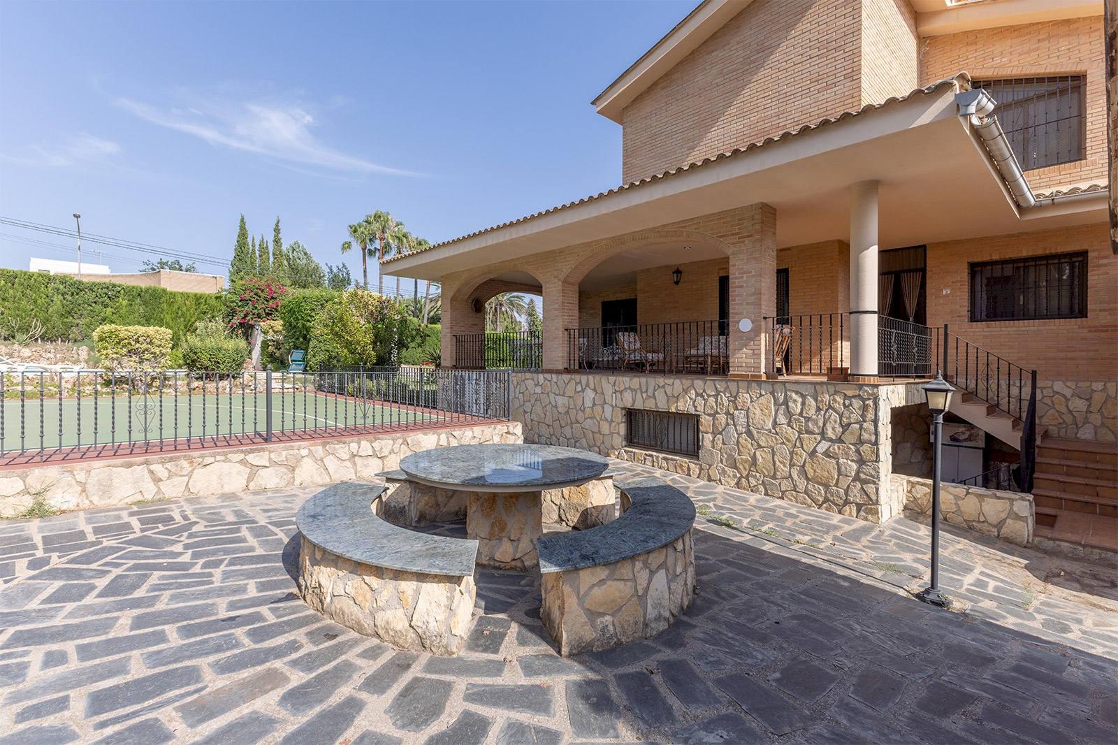 In the Montealcedo de Riba-Roja del Turia urbanization, one of the luxury areas with the greatest projection in Valencia, we find this exclusive 624 m² house. The chalet was built in 1992 and is located on a corner plot of 1883 m². Its location, close to the urban center of L'Eliana and just 15 minutes from Valencia, stands out for being a privileged environment, with excellent communications and a wide variety of services.