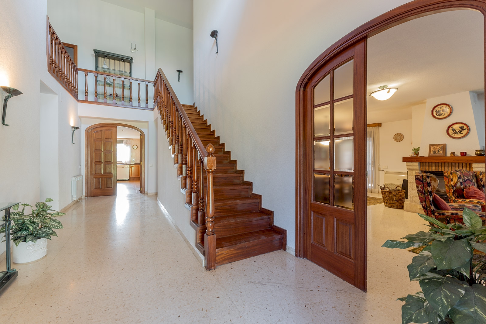 The house is distributed over three levels and is in excellent condition, although some finishes lend themselves to modernization. Access to the house is through the intermediate level, which welcomes us with a bright hall that leads us to a spacious 50 m² living-dining room, with a fireplace and large windows overlooking the garden. Its large kitchen with office area and pantry also has direct access to the outside. This level is completed with a small secondary kitchen, a laundry room, a large bathroom and a spacious room currently used as a hobby room. The entire ground floor is surrounded by large terraces, ideal for leisure and the enjoyment of the whole family. The first floor has five generously proportioned bedrooms, four of them with direct access to their own private terrace, and two full bathrooms, one of them en-suite. At the lowest level of the property we find a semi-basement of almost 300 m² with several multipurpose units and a parking space with capacity for five vehicles.