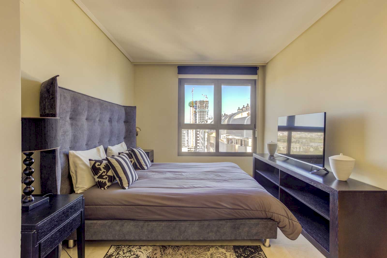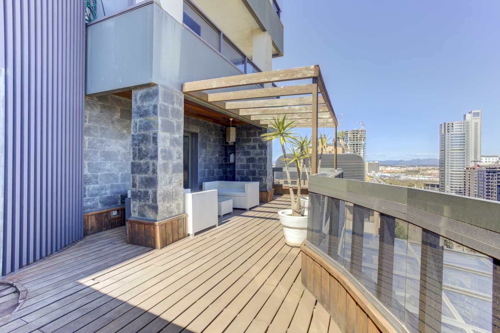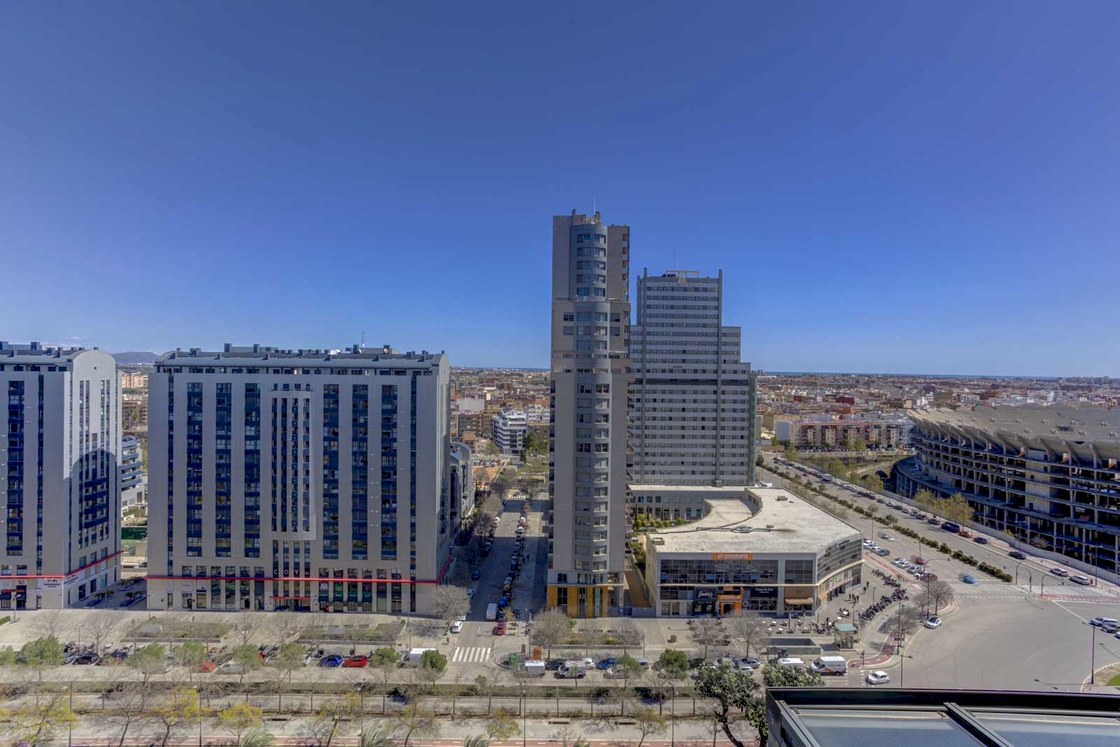 On the prestigious Avenida Cortes Valencianas, next to the future new Valencia stadium, is this exclusive 130 m² apartment with a 48 m² terrace. The property is located on the fifteenth floor of a modern residential complex with a swimming pool, paddle tennis court, gym, social club and 24-hour porter service.