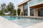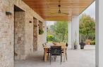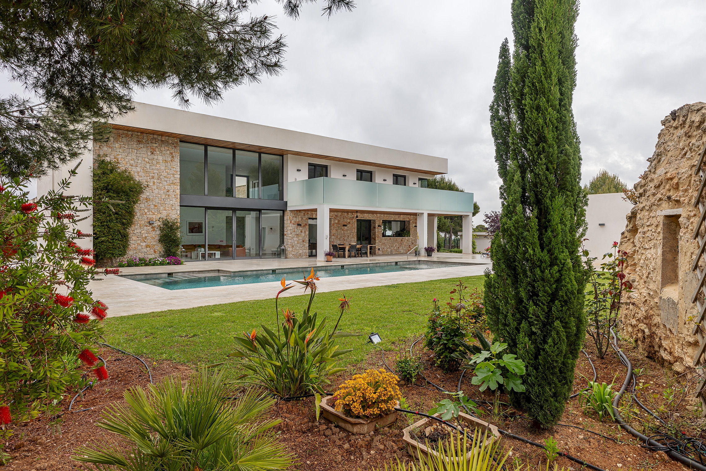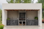 The outside of the house presents a modern aesthetics where predominates the natural stone and the cement-mortar lining painted with ochre tones, according to the urban planning regulations of the area. Next to the swimming-pool there is a nice barbecue area.