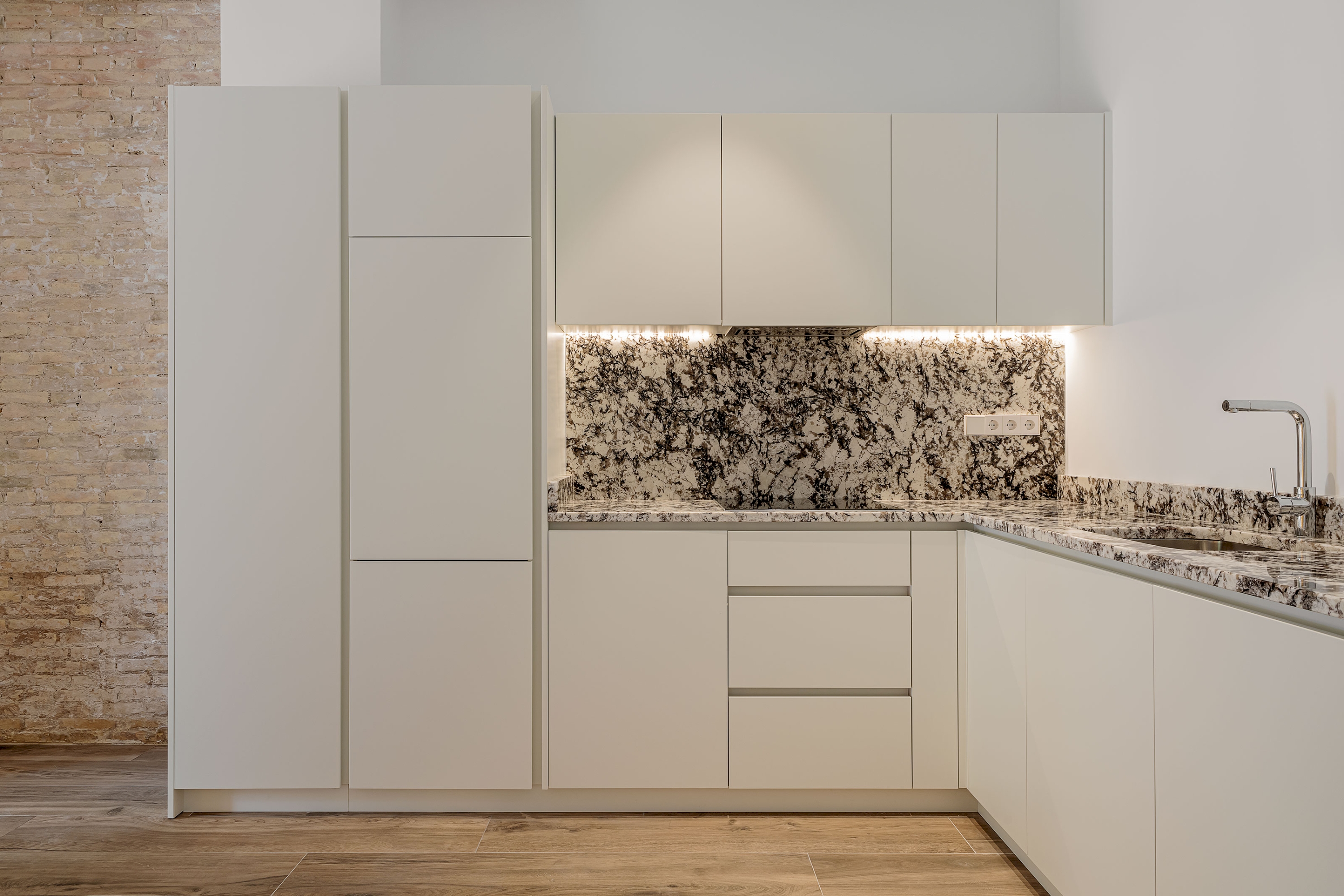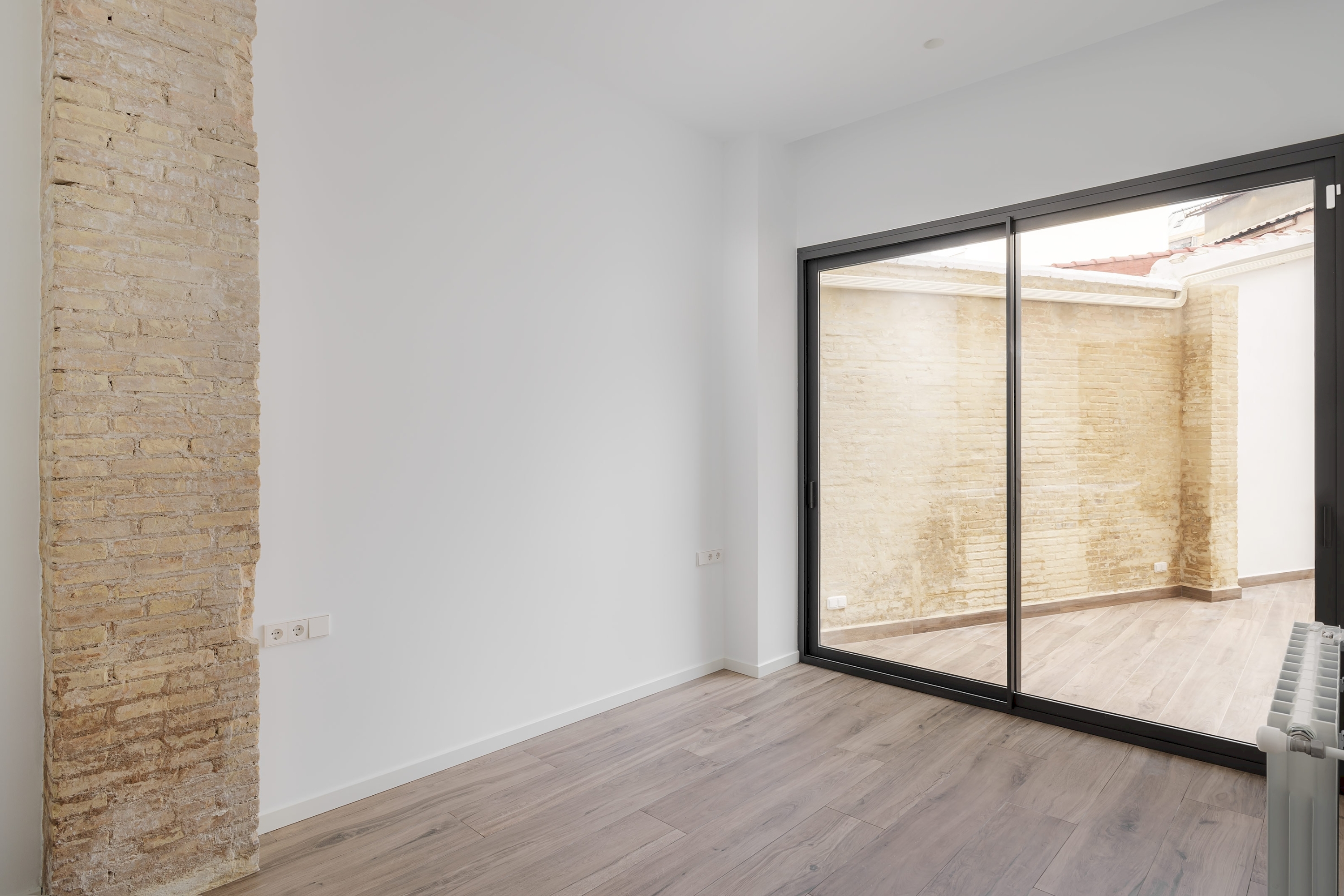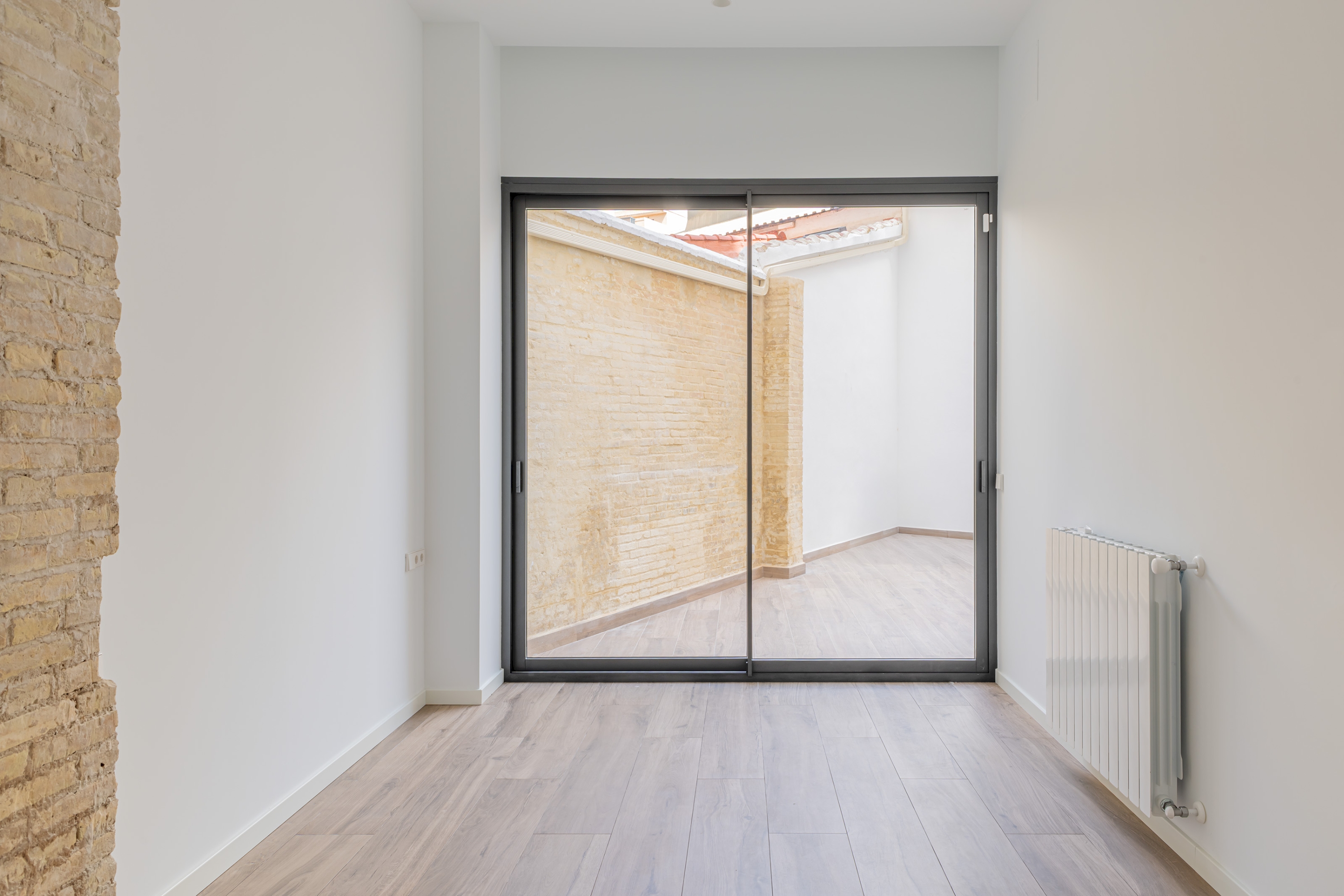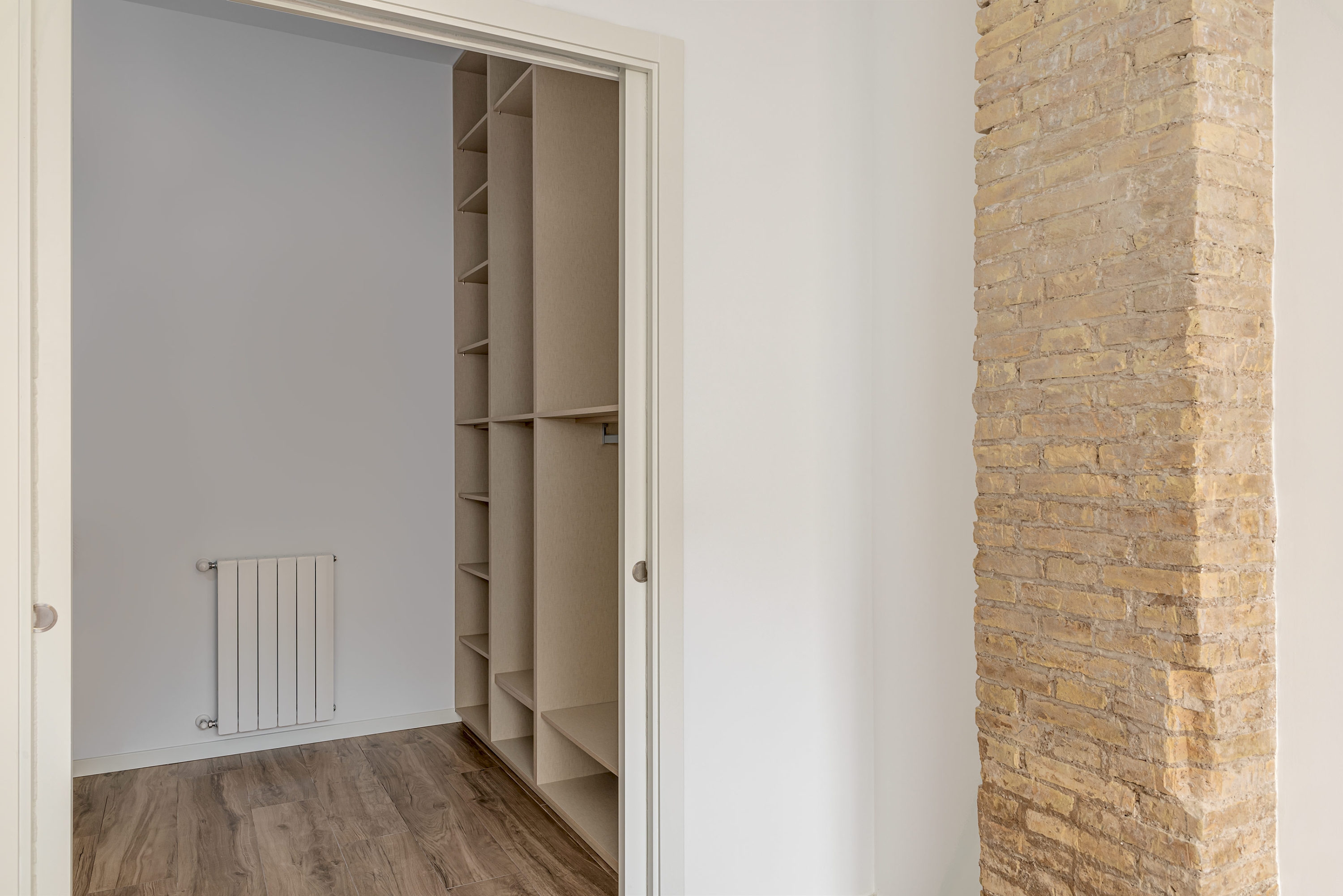 El apartamento cuenta con techos altos, calefacción mediante suelo radiante, climatización por conductos y sistema Air Zone, carpinterías metálicas de altas prestaciones, suelo porcelánico de efecto parquet y paredes lisas. Cabe destacar que se han preservado y rehabilitado diferentes tabiques del ladrillo caravista original para darle un toque rústico y aportar carácter al diseño.