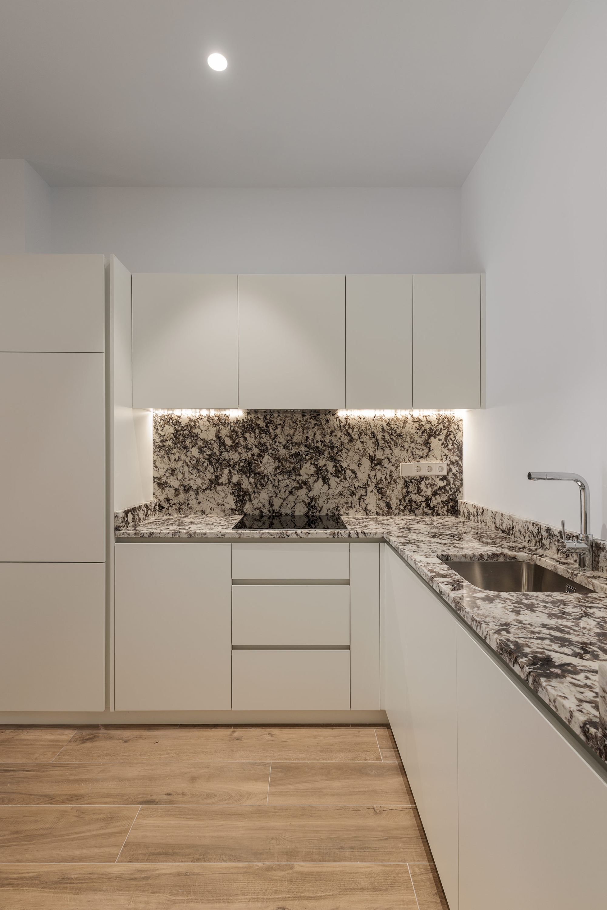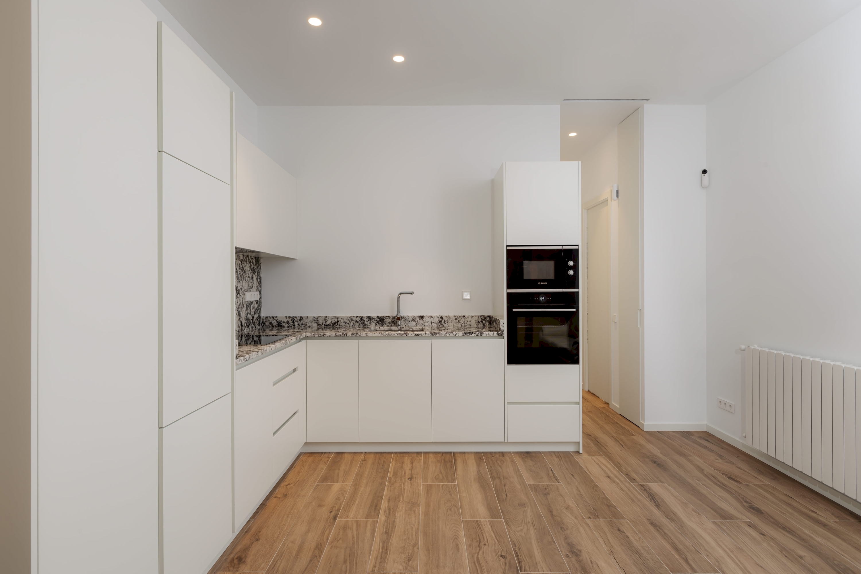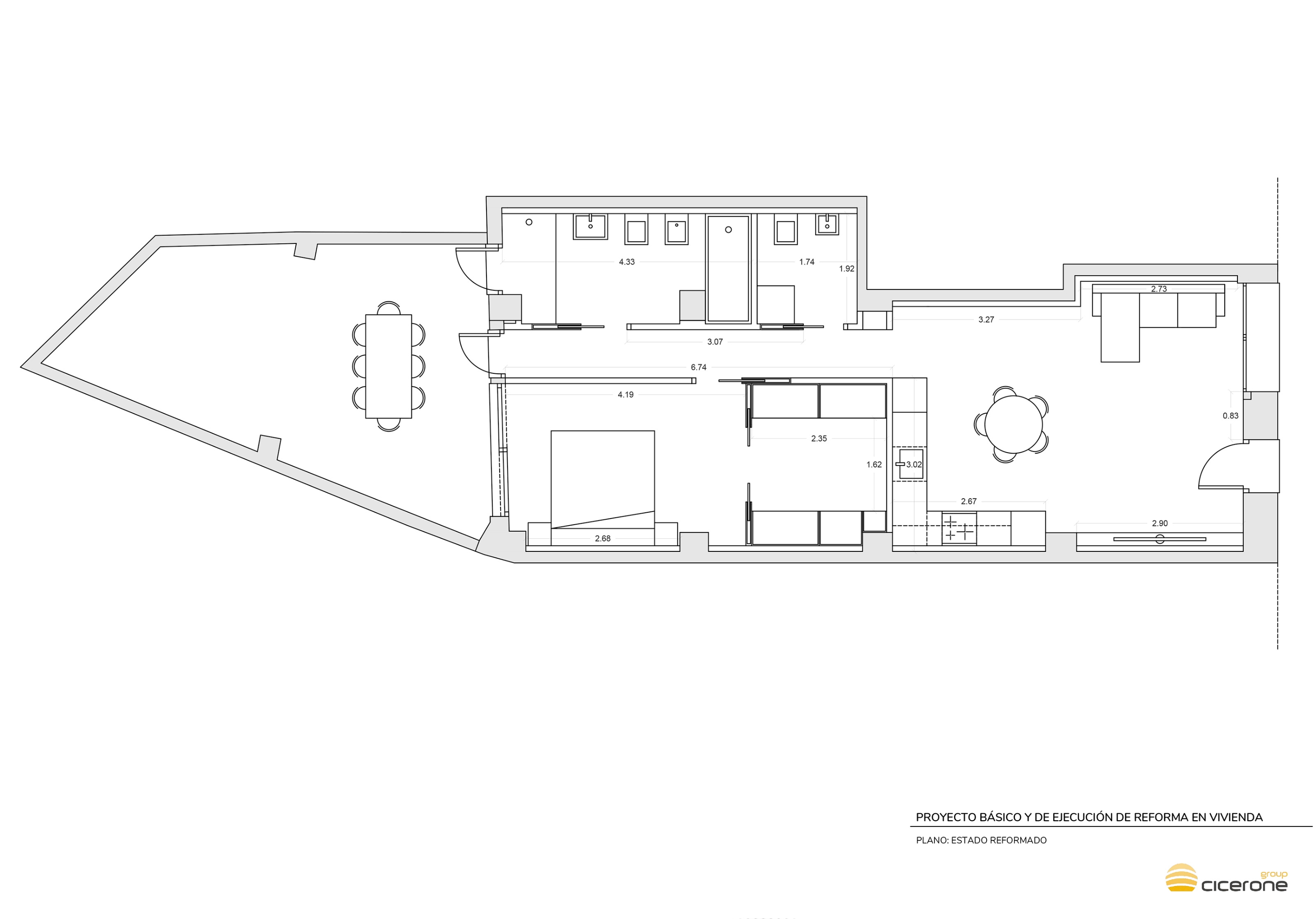 El apartamento ha sido objeto de una reforma integral por el equipo de Cicerone, empleando materiales de alta calidad y siguiendo un diseño contemporáneo. La vivienda nos recibe con agradable espacio diáfano donde conviven la zona de estar, el comedor y la cocina. A través del pasillo se accede a un baño completo, un aseo que también hace la función de lavadero y el dormitorio, equipado con vestidor y salida directa a una amplia terraza recayente al patio de manzanas.