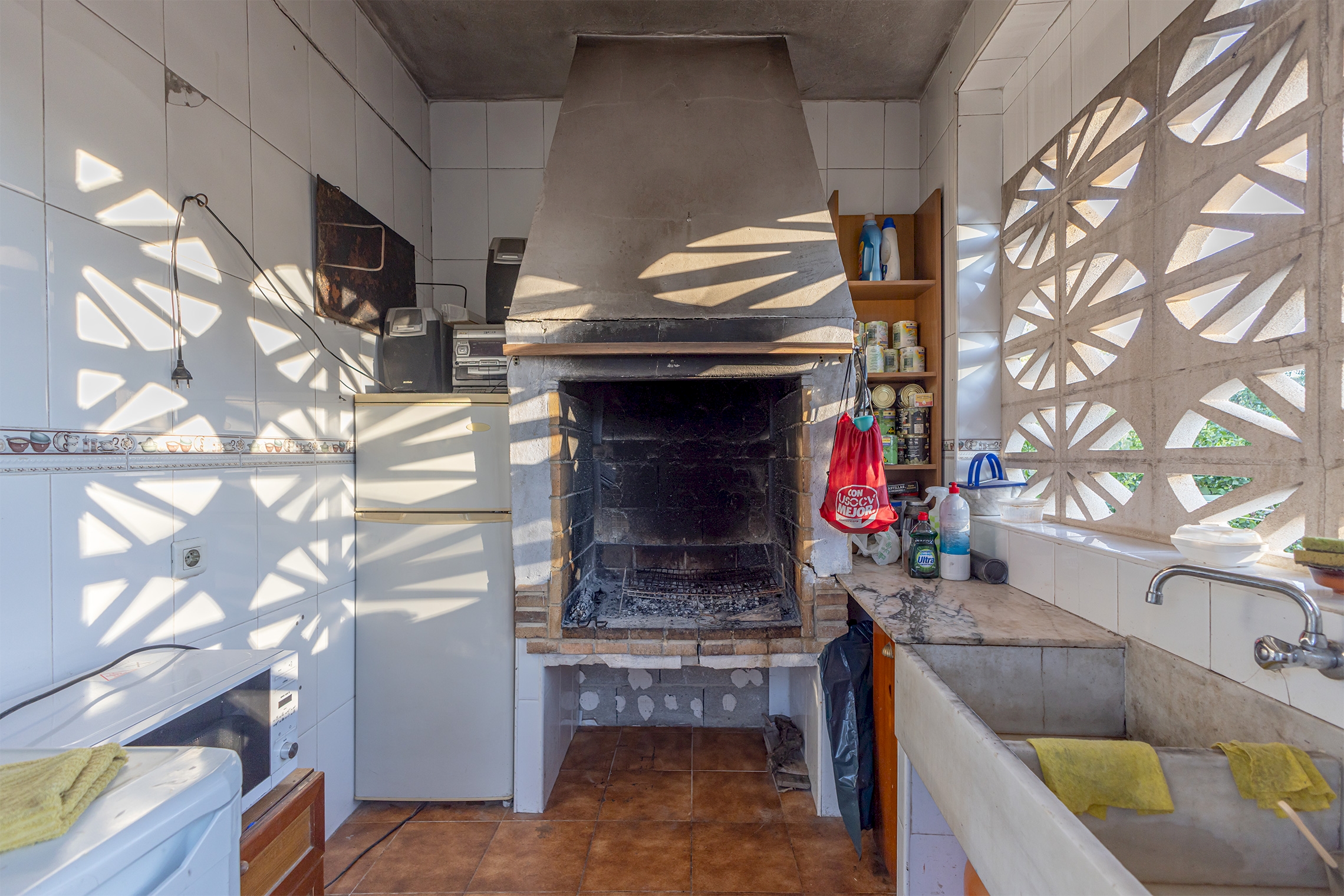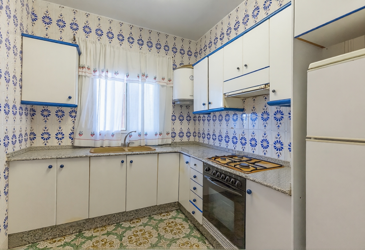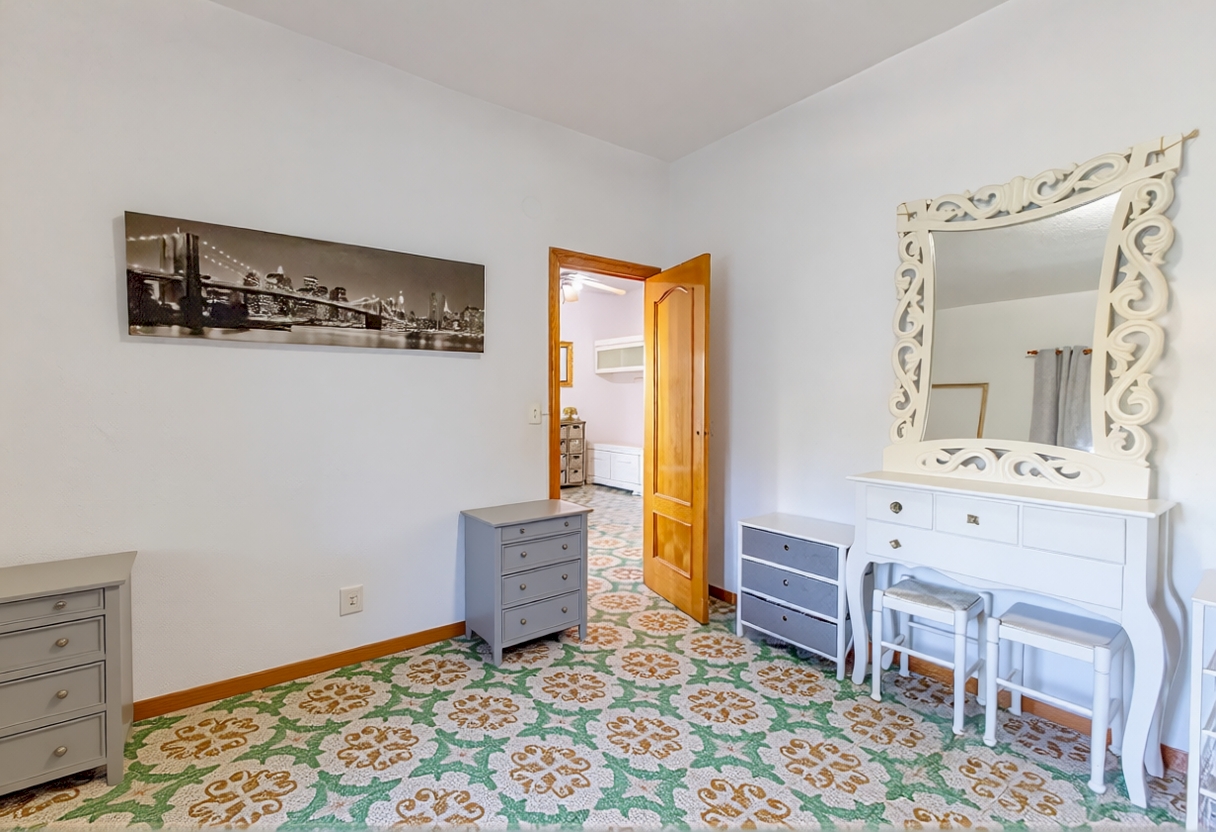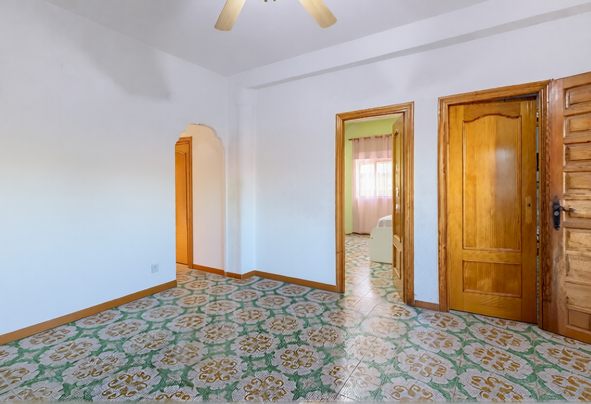 La casa se distribuye en una sola planta con tres habitaciones dobles, cocina independiente, salón comedor y dos baños completos, uno de los cuales sen encuentra en el exterior. En la parte delantera se encuentra una agradable terraza cubierta, mientras que en la zona posterior, junto a la piscina de 17 m², se ubica un práctico paellero. El acceso a la parcela cuenta con entrada peatonal y otra independiente directa al garaje cerrado, que además dispone de una zona de almacén.