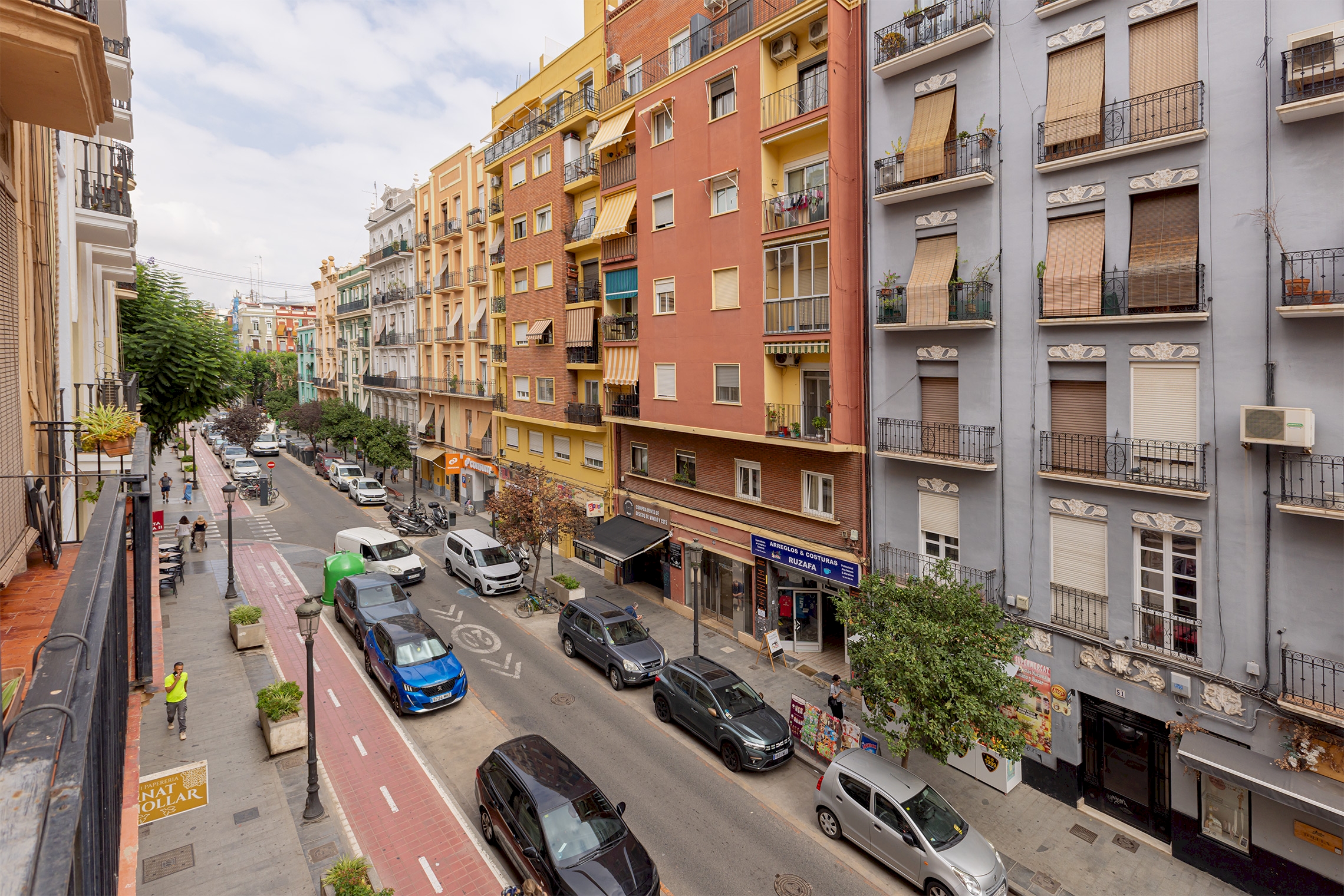 Ubicado en uno de los barrios más demandados y con mayor proyección de Valencia, Ruzafa, se presenta este luminoso piso de 99 m² según catastro, totalmente reformado y situado en una segunda planta de un edificio construido en 1990 que se encuentra en buen estado de conservación y cuenta con ascensor.