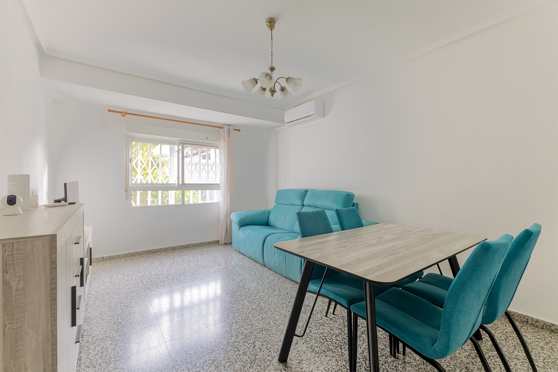 La vivienda se distribuye en salón comedor independiente, cocina separada, cuatro habitaciones, una de ellas con salida a balcón, un baño completo y un patio de luces con fregadero que aporta ventilación y funcionalidad al conjunto. Se encuentra en buen estado para entrar a vivir y ha sido objeto de diversas mejoras recientes que incrementan su confort y seguridad, como la instalación de puerta acorazada, la reforma integral del baño, ventanas con doble acristalamiento, videoportero y la renovación completa de las instalaciones eléctrica, de agua y de gas. Al mismo tiempo, ofrece margen para una actualización o reforma que permita adaptarla a un proyecto más actual.