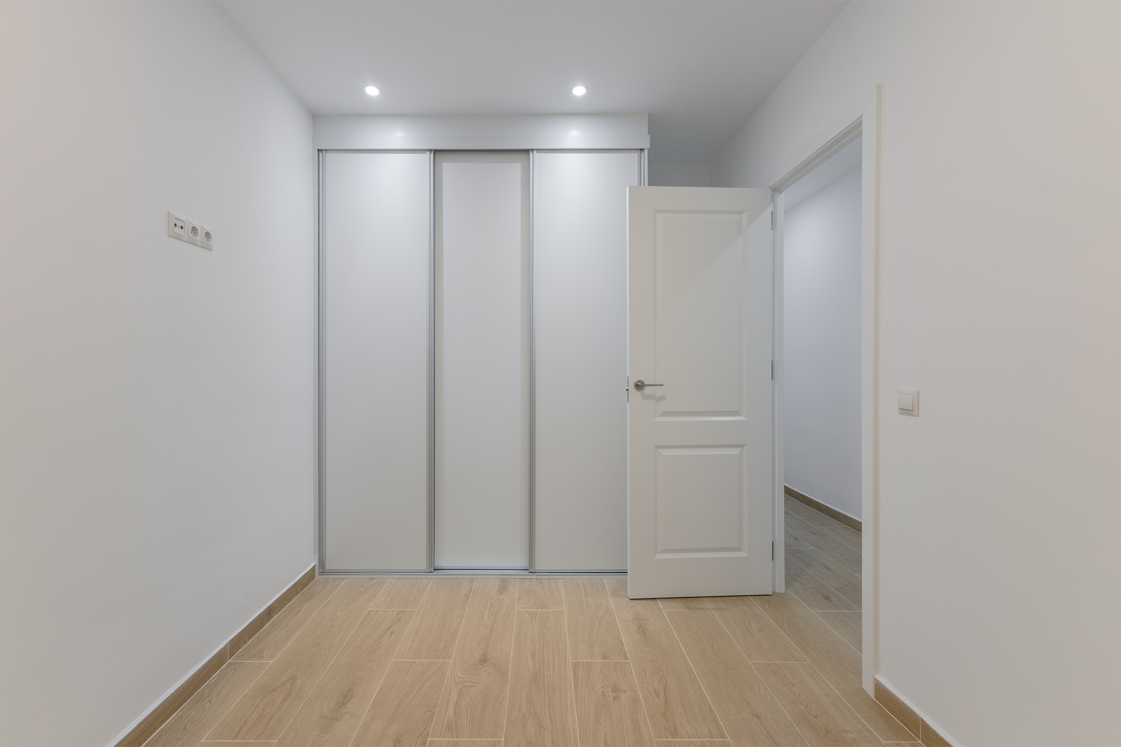 La propiedad disfruta de vistas despejadas y muy agradables, así como de una luminosidad excelente. El piso cuenta con una reforma integral a estrenar y se distribuye en dos dormitorios individuales, un dormitorio doble de buen tamaño, dos cuartos de baño completos y una moderna cocina abierta al espacio de salón-comedor. La vivienda cuenta con carpinterías de PVC con doble acristalamiento, paredes lisas, suelos cerámicos con efecto madera y pre instalación para una máquina de A/A en el salón-comedor.